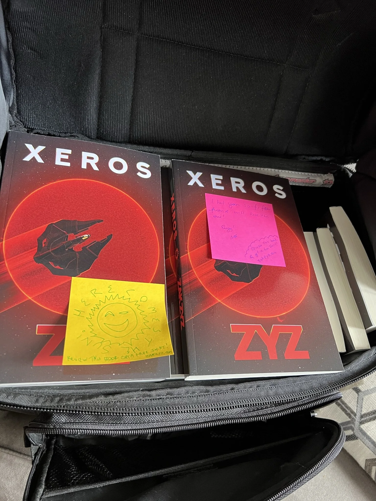 I’m attaching little post-its letting people know about my free shirt for review promo as well :D